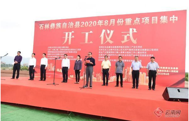 12 20-08近日,昆明市石林彝族自治縣2020年8月份重點項目集中開工共計12個,其中,昆明梓橦宮全新生物制藥技改擴能建設項目順利開工。