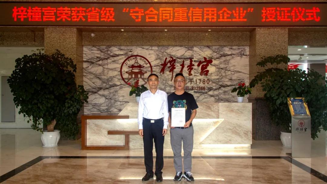 梓橦宮榮獲“省級守合同重信用企業”稱號!