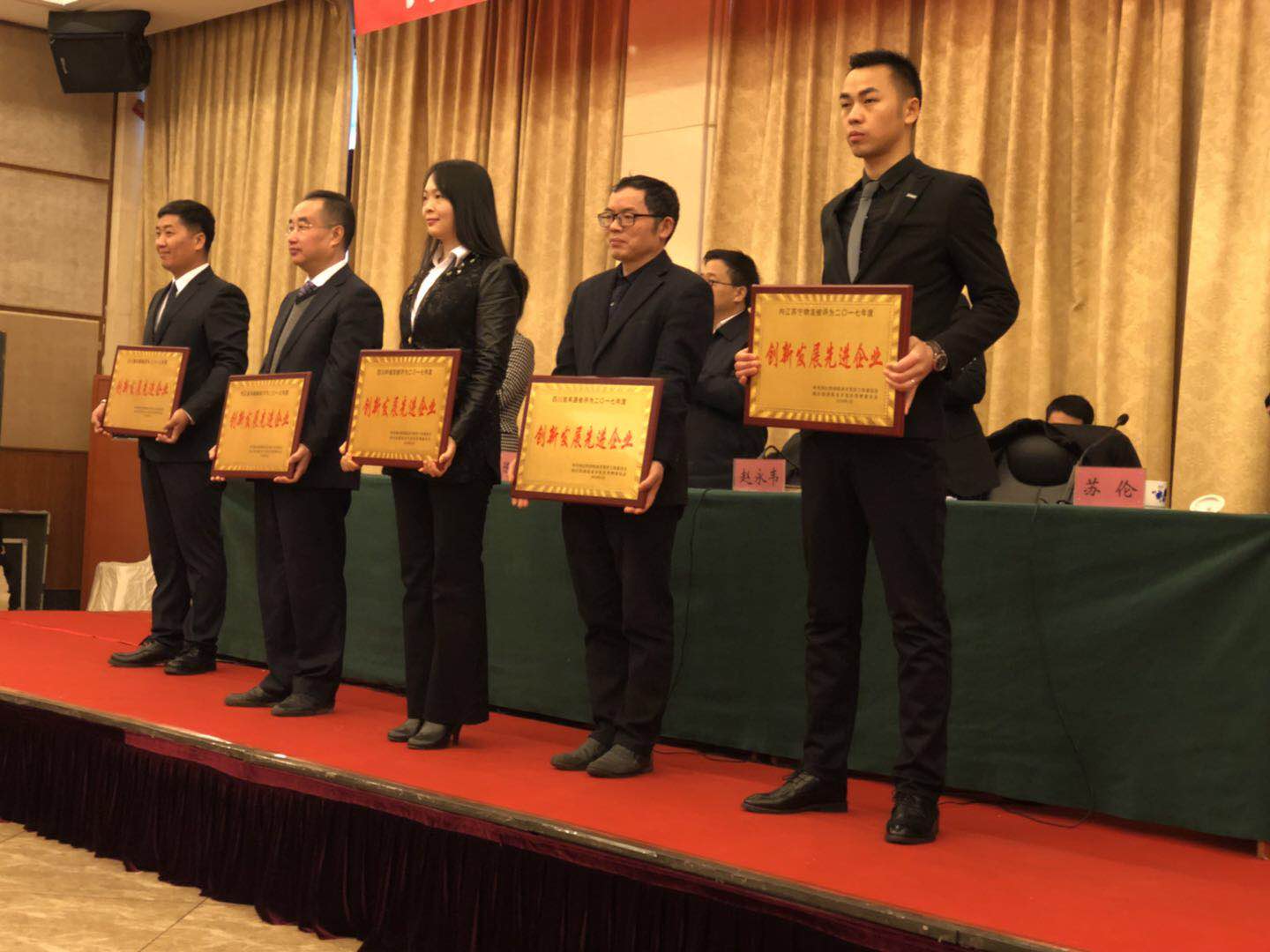 12 18-022018年2月11日,內江市經濟技術開發區召開2017年總結表揚暨2018年經濟工作會。 四川梓橦宮藥業股份有限公司榮獲2017年度“創新發展先進企業”和“經濟發展貢獻獎一等獎”,同時梓橦宮藥業董事長唐銑博士被評為2017年度“優秀企業家”!